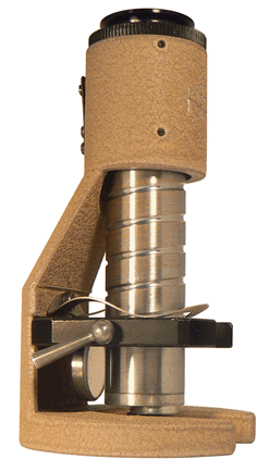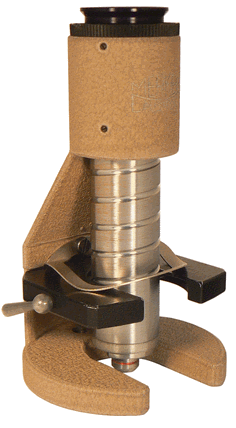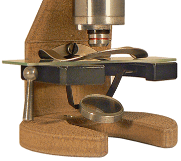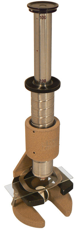 Le corps du microscope est en métal léger recouvert d'une laque vermiculée de couleur claire, passée au four. |