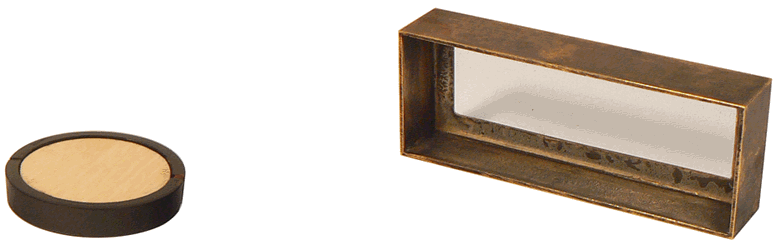 A gauche, la "dame", dont on choisit la face noire ou ivoire et, à droite, la cuve au fond transparent |