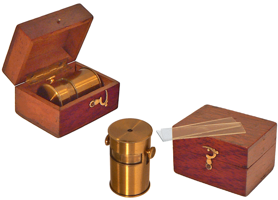Microscope de poche "Taschenmikroskop" - Coffret 6 x 4,5 x 3,8 cm - Allemagne - Vers 1900 |