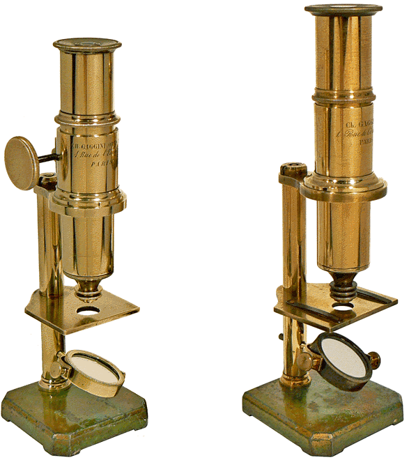 Microscopes Ch. GAGGINI - hauteurs 17,5 et 20 cm - Paris, vers 1900 |