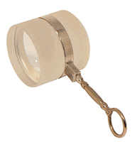 La lentille de Stanhope consiste en un petit prisme à section carrée ou un cylindre en verre dont l'une des extrémités, fortement convexe, joue le rôle de loupe puissante, l'autre extrémité, plane, se trouvant au foyer de cette loupe. Par suite, à tout objet transparent placé sur la surface plane, il correspond une image très grossie que l'on observe par l'extrémité convexe. |