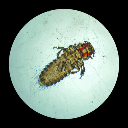 L'un des poux recueillis sur un chien de Terre-Neuve. |