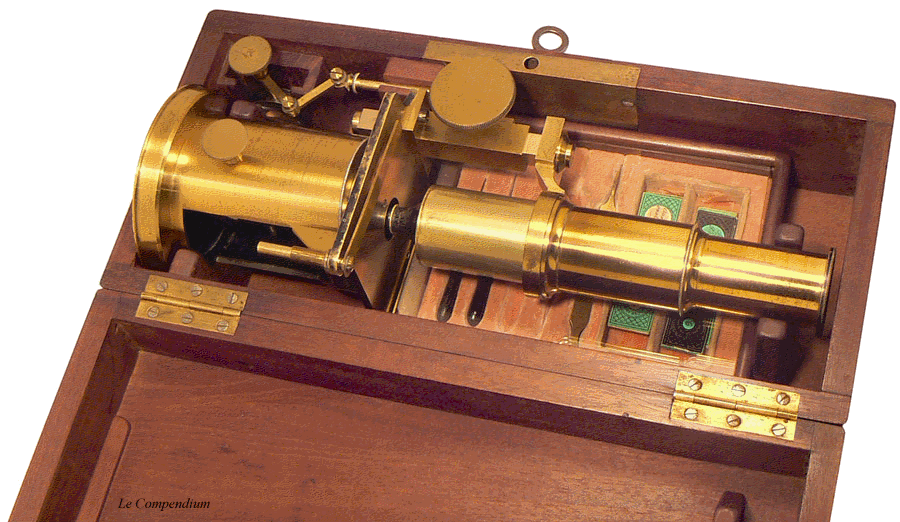 Sur son site "antique-microscopes.com", Allan Wissner, présente un spécimen très proche ayant appartenu à Georges Tate, naturaliste écossais, (1805-1871). |