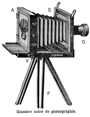 On peut imaginer que, sous son voile noir, le photographe peint par Dagnan, utilise aussi une loupe, probablement différente de la nôtre, pour parfaire la mise au point de l'image de la mariée sur la plaque en verre dépoli placée à l'arrière de sa chambre noire. |