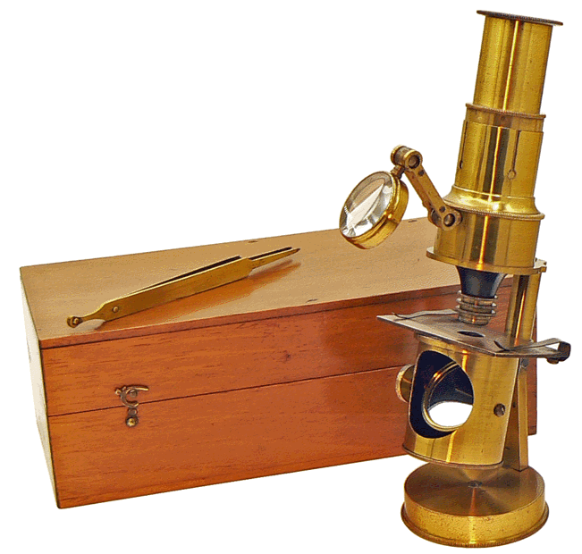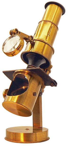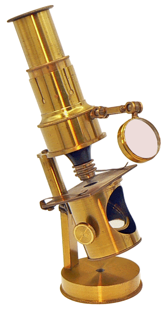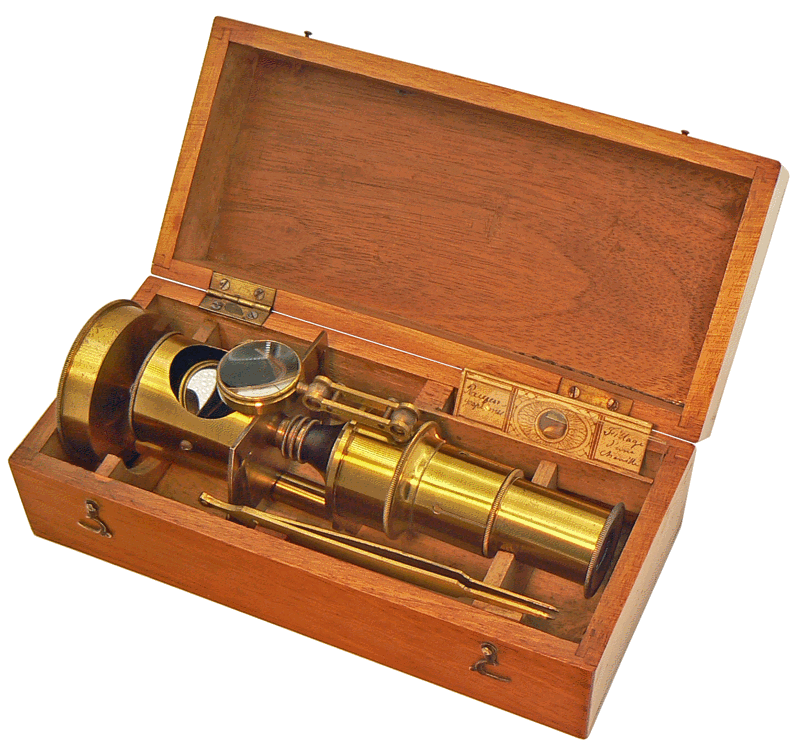A la fois différents et proches l'un de l'autre. Le Compendium renferme un autre petit modèle de microscope à niche ou à tambour, similaire en qualité et dimensions, lui-aussi inclinable. On a accès à ce second modèle en cliquant sur la photographie de droite. |