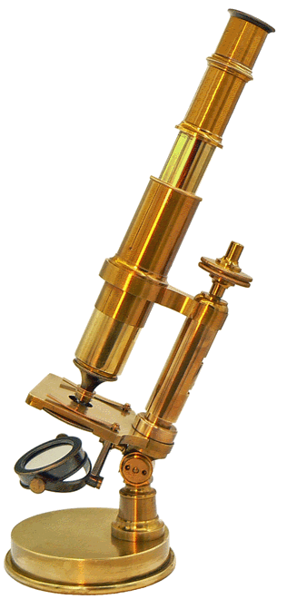 A la manière des microscopes anglais, le tube optique peut, par tirage, prendre une grande longueur en augmentant les grossissements. La hauteur de l'instrument peut passer de 34 à 43 centimètres. |