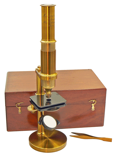 Microscope droit, Mirand et Fils - hauteur minimum 27 cm - France, vers 1870 |