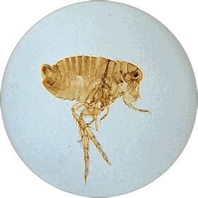 Nous avons observé une préparation de puce à travers l'oculaire tenu à l'envers : l'image est bonne et le grossissement de l'ordre d'une dizaine de fois. |