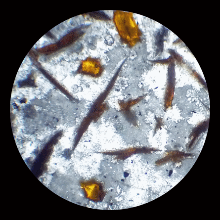 Sur l'image de gauche, la configuration optique est identique à celle du microscope de poche. A droite, avec l'objectif plus puissant, le grossissement approche 50 fois. |