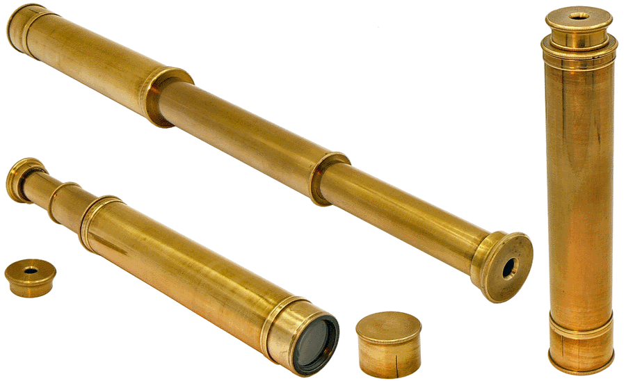 Il est possible d'ôter le collier qui permet d'assujettir le tube oculaire au reste de l'instrument. Equipé de son oculaire et de l'objectif de faible puissance (servant de redresseur d'image pour la longue-vue), le tube devient alors un microscope de poche de 12 cm grossissant une dizaine de fois. |