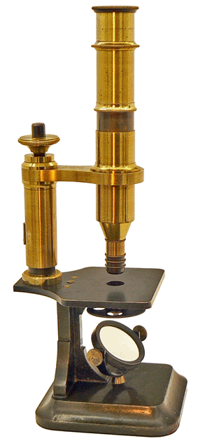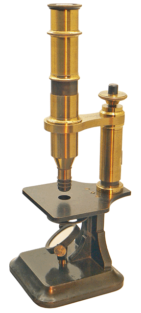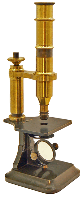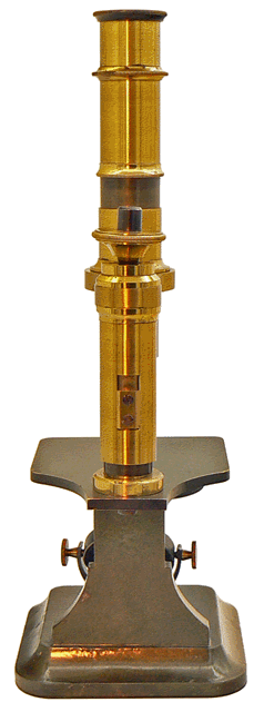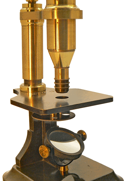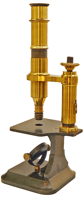 C'est en 1864 qu'Arthur Chevalier présente son microscope dans la première édition de L'ÉTUDIANT MICROGRAPHE dont il est l'auteur. Sur notre spécimen, le bras de potence dans laquelle coulisse le tube optique porte sa signature sans que la mention du grade de docteur n'y figure comme c'est la cas sur tous ses microscopes. Ce spécimen est donc vraisemblablement antérieur à 1870, année au cours de laquelle Arthur Chevalier se vit décerner un doctorat honoris causa. |