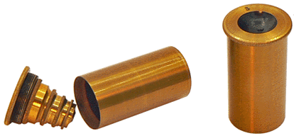 Les objectifs sont, pour le rangement, vissés sur les couvercles des étuis de protection. |