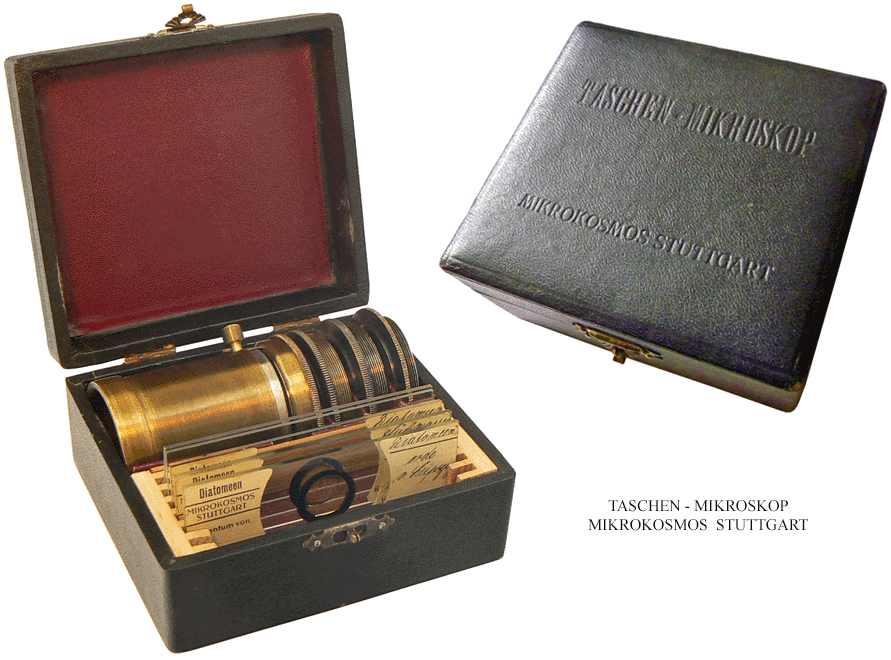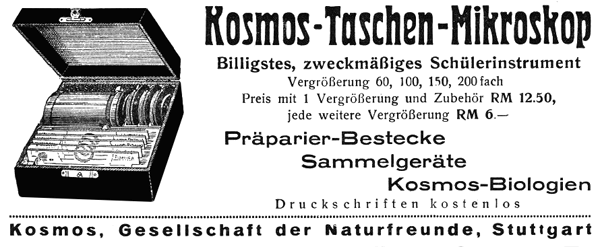 Microscope de poche "Kosmos" dans son coffret de 10 x 9 x 4,5 cm - Stuttgart, vers 1930 |