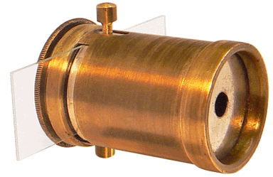 Les grossissements obtenus sont élevés et, pour éviter de trop importantes abberations de sphéricité dues à la forte convexité des lentilles, l'extrémité opposée à l'œilleton est traité en diaphragme privilégiant les rayons voisins de l'axe optique. La préparation en place, l'observateur obtient la netteté de l'image en tournant sur lui-même l'œilleton fileté... |