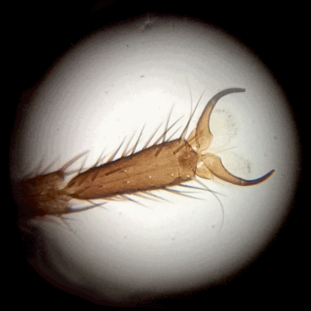 La photo, à gauche, est celle d'une patte de mouche préparée sur une lame de petit format, plus ancienne que notre microscope. |