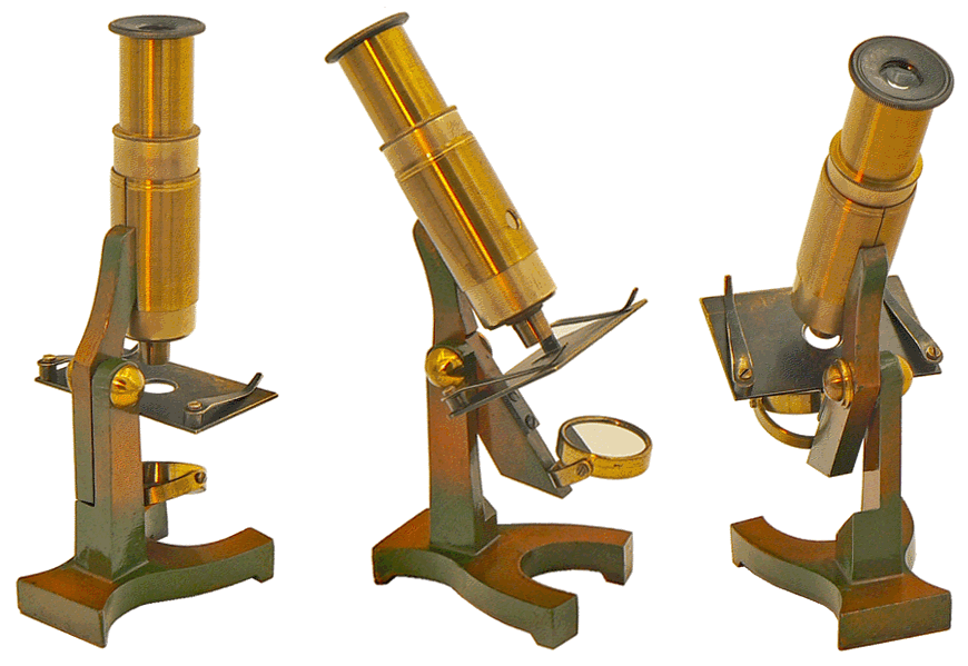 Microscope élémentaire inclinable- "Household microscope"- Hauteur minimum 17 cm - Vers 1900 |