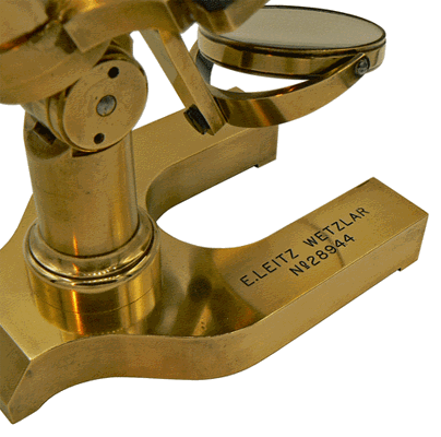 Le n° 28944 gravé sur le pieds du microscope et sur la tranche supérieure de la porte du coffret de rangement indique, si l'on se réfère au document "Ernst Leitz Wetzlar Company Microscope Serial Numbers", qu'il a été fabriqué en 1893. |