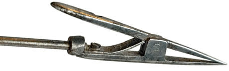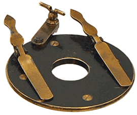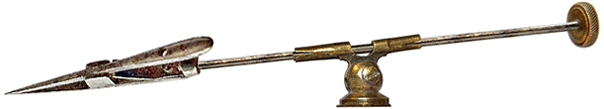 Une fine pince en acier permet de tenir les petits objets pour les observer sous différents angles. Sa longueur totale est égale à 8 centimètres, le diamètre de la tige étant de l'ordre du millimètre. Le tube-support articulé dans lequel elle coulisse est assujetti à la partie mobile du chariot ce qui permet de bénéficier de la précision de ses déplacements.