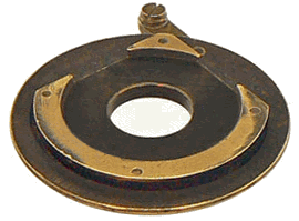 Deux vis à tête moletée poussent ou libèrent deux pièces à coulisse identiques. A l'opposée, un doigt monté sur pivot est soumis à la pression d'un ressort à lame qui fait jouer le doigt dans la direction de la diagonale.