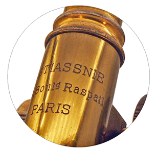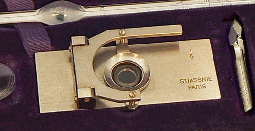 En cliquant sur l'image du tube optique gravé à sa marque, on se dirige vers la page présentant le Microscope Stiassnie utilisé ici. |