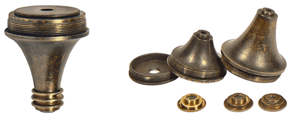 L'objectif est formé par deux cônes aux axes communs avec celui du tube optique et par trois lentilles de puissances différentes. Lorsque l'objectif est en place, le cône extérieur enveloppe le cône intérieur. La présence de deux oculaires, un "faible" et un "fort", et le fait de pouvoir placer la lentille objectif la plus faible à l'extrémité de l'un ou l'autre des cônes, permet de réaliser 18 amplifications, allant de 25 à 480 fois. |