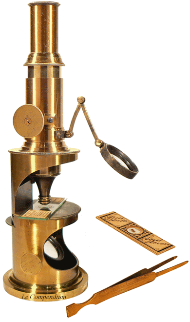 la plus complète : "Ces microscopes, présentés à l'Institut, doivent le grand succès dont ils jouissent autant à l'universalité de leur usage qu'à leur extrême bon marché. La lentille la plus faible, employée seule, a une amplification excessivement faible ; ainsi, les gens du monde, qui ne voient dans le microscope qu'un passe-temps, pourront examiner des insectes entiers sans éprouver les difficultés qu'ils rencontraient dans les autres instruments qui ont un champ fort rétréci ; quant aux puissants