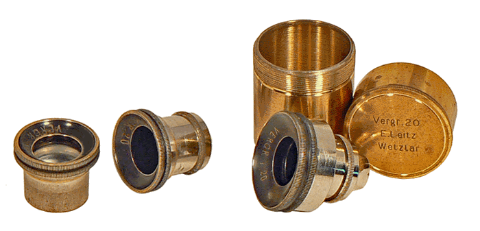 Ci-dessous, trois dispositifs optiques utilisés sur les microscopes de dissection : la loupe à dissection de Stiassnie, le triplet du type Steinheil et le doublet du type Ramsden |