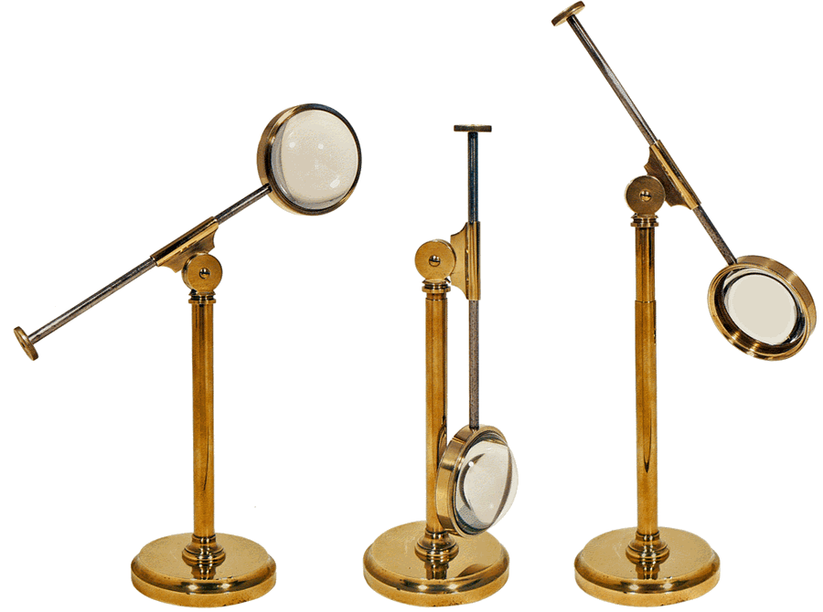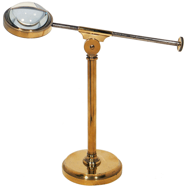 Il s'agit du "Bull's Eye" (littéralement "œil-de-taureau") des Anglo-saxons utilisé pour éclairer, par le dessus, les préparations microscopiques opaques. La lentille plan-convexe de faible rayon de courbure, donc fortement bombée, est impropre à une utilisation en tant que loupe sauf à très courte distance. C'est un dispositif qui est prévu pour focaliser la lumière d'une source sur ce que l'on examine. |