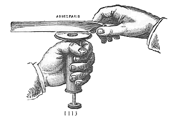 "Cet instrument comprend essentiellement un cylindre surmonté d'une large plate-forme ; on place l'objet dans le cylindre, après l'avoir enrobé dans la moelle de Sureau. Un piston, actionné par une vis micrométrique, fait monter l'objet de petites quantités. Le rasoir coupe tout ce qui dépasse la plate-forme. Avec cet instrument, la finesse des coupes n'a pas d'autres limites que la finesse du tranchant et la perfection de la vis micrométrique"