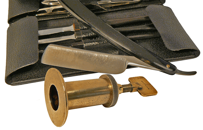 Microtome et nécessaire de Ranvier, cuvette à rainures et tournette...