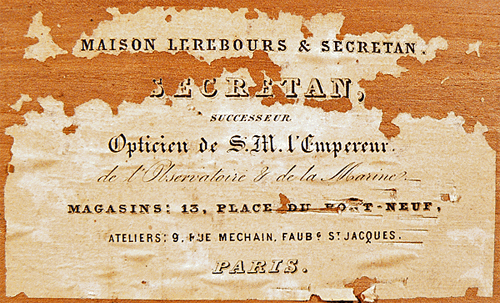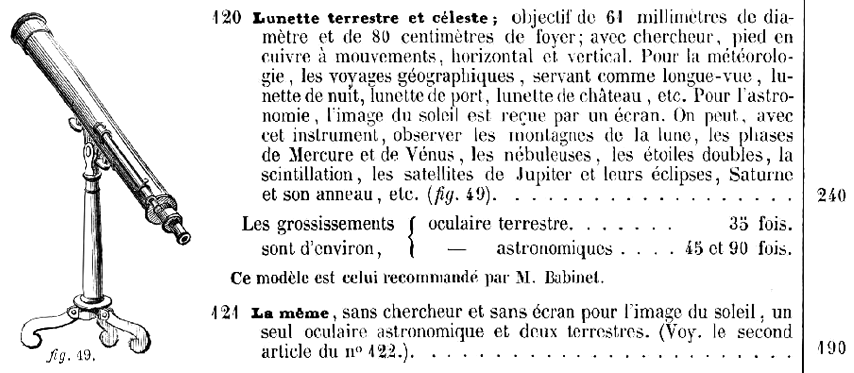 Au tout début du XXe siècle, la lunette - sous une forme identique au modèle des années 1850 - figure toujours dans le catalogue d'ASTRONOMIE ET D'OPTIQUE de G. SECRETAN, successeur de LEREBOURS ET SECRETAN.