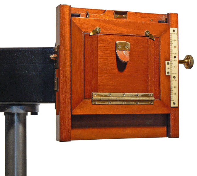 Les photographies des spectres sont obtenues sur des plaques de 10,7 x 8,2 cm placées dans un châssis en acajou. Le déplacement vertical et repérable du châssis permet d'enregistrer plusieurs spectres sur la même plaque. Une échelle micrométrique superposée au spectre permet de déduire les longueurs d'onde à partir de la position des raies d'éléments connus. |