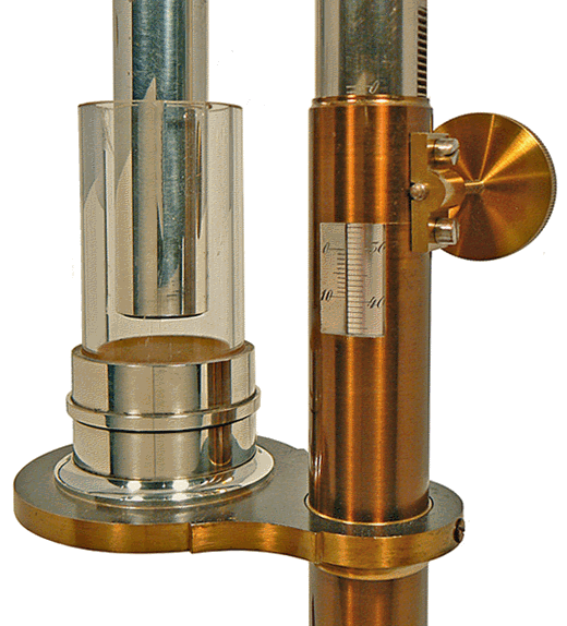 Le vernier permet de relever la hauteur de la couche de liquide traversée avec la précison du dixième de millimètre. |