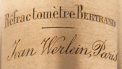 Réfractomètre Bertrand - Constructeur Ivan Werlein - Longueur minimum 5,5 cm ; diamètre 3 cm - Fin du XIXe siècle |