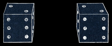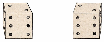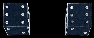 Lorsque l'on photographie notre dé à jouer avec un appareil photographique stéréoscopique muni de deux objectifs conjugués impressionnant la même plaque photographique, l'objectif qui joue le rôle de notre œil gauche enregistre une image semblable à celle de gauche tandis que l'autre objectif, jouant le rôle de notre œil droit, enregistre une image semblable à celle de droite. C'est le même objet, vu sous deux angles légèrement différents. |