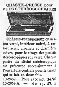 Réalisation d'une épreuve positive sur verre pour stéréoscope : utilisation du "châssis-transposeur" |