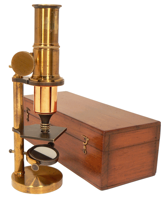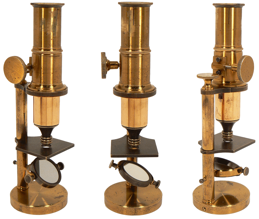 Microscope droit, à socle circulaire et colonne excentrée - Hauteur minimum 21 cm - France - Circa 1890