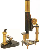 Petits microscopes, à niche ou à tambour, dont la hauteur est égale à 15 cm.
